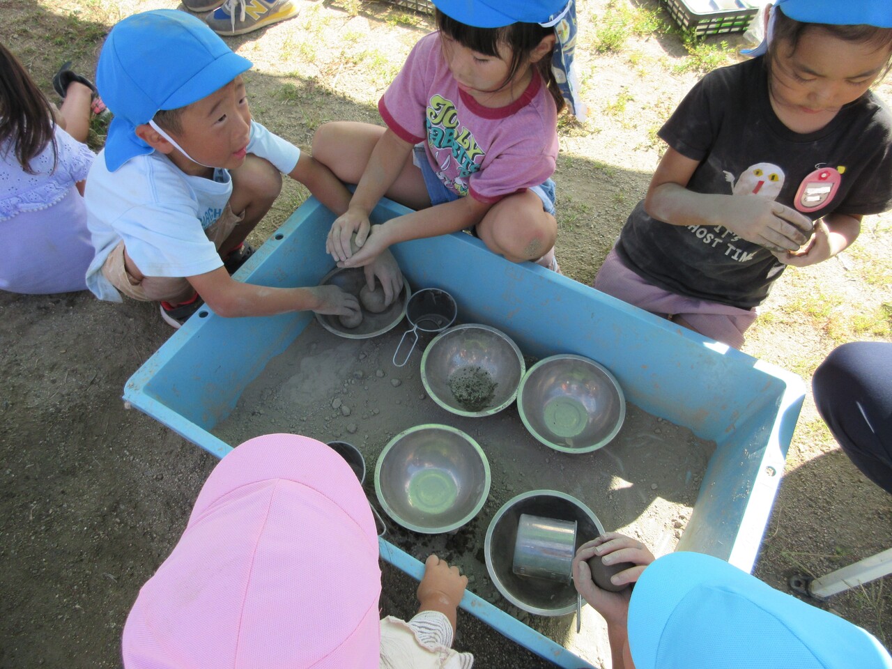 公開保育当日、子ども達は泥団子、サーキット遊び、集団遊び、虫探し、アトリエ(製作)のそれぞれのコーナーから自分で好きな遊びを決め、夢中になって遊んでいました。法人内の他園の職員(部会担当職員)も自由に見学しました。